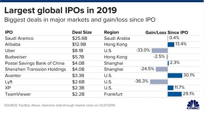 以下是CNBC匯總的 2019 年全球十大IPO: