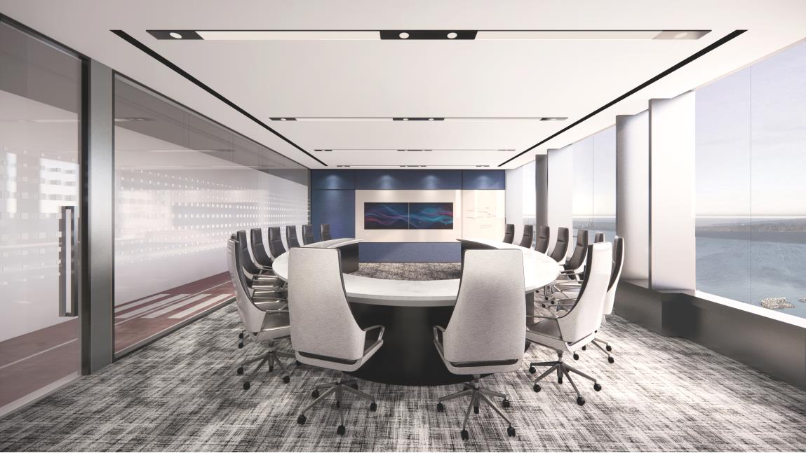 會(huì)議室兩側(cè)是整面落地窗的設(shè)計(jì),使得整個(gè)會(huì)議室哪怕不用人工光照也足夠明亮。同時(shí)為了確保會(huì)議的私密性,將連接辦公區(qū)的一側(cè)玻璃中部進(jìn)行磨砂處理,避免了被一覽無(wú)余的尷尬。對(duì)于科技公司來(lái)說(shuō),會(huì)議區(qū)往往會(huì)比辦公區(qū)更為重要,因?yàn)楫a(chǎn)品設(shè)計(jì)的每一個(gè)環(huán)節(jié)都需要經(jīng)過(guò)大量的探討和研究才能較終確定,所以在會(huì)議室的設(shè)計(jì)上,需要具有易發(fā)散思維,激發(fā)創(chuàng)意的特性。因此會(huì)議室的擺放方式選用U形風(fēng)格,U形會(huì)議桌圍繞著多功能會(huì)議屏,椅子擺放在桌子外圍,這樣在開(kāi)會(huì)討論時(shí)特別適合進(jìn)行頭腦風(fēng)暴,可以增強(qiáng)與會(huì)人員之間的互動(dòng)和交談溝通。