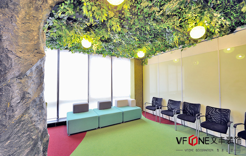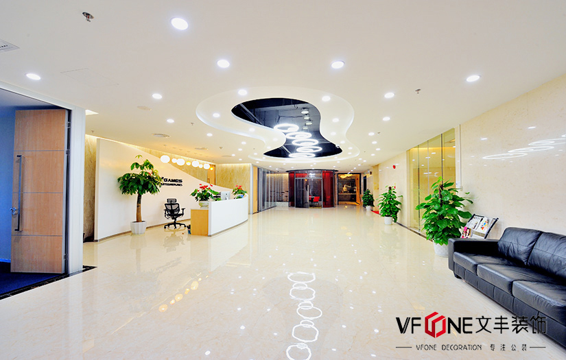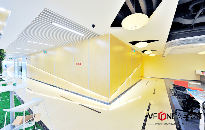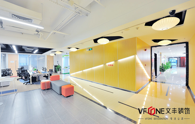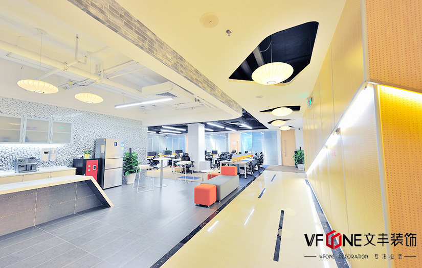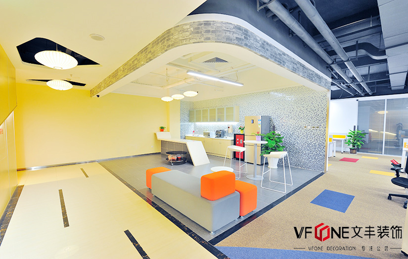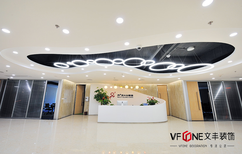 相對以往的吊頂施工,本案辦公室吊頂在施工時是把完全管道裸露出來的,酷似工業風設計,管道與線條秩序井然,賦予出另一種坦誠的美,這部分裝修成本也可節省下來。R2 Games選擇深圳公裝公司 文豐裝飾,不僅是對我們設計實力的認可,更是對我們一站式裝修服務的放心。