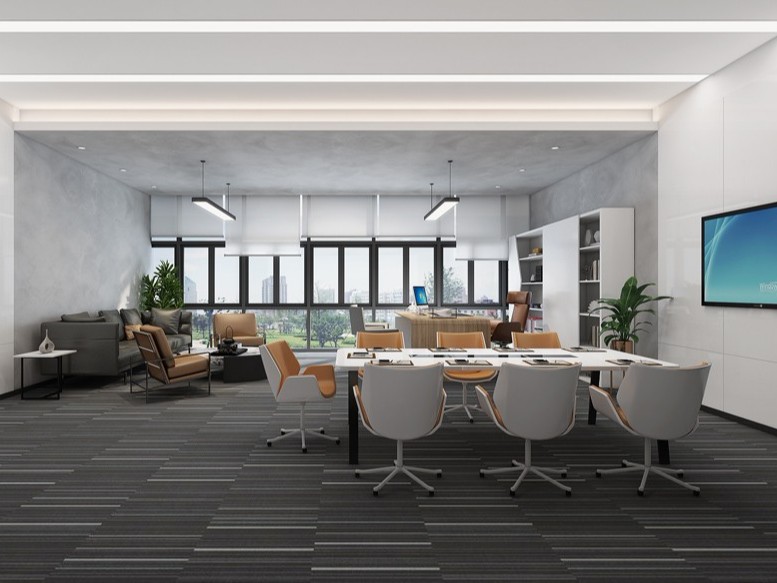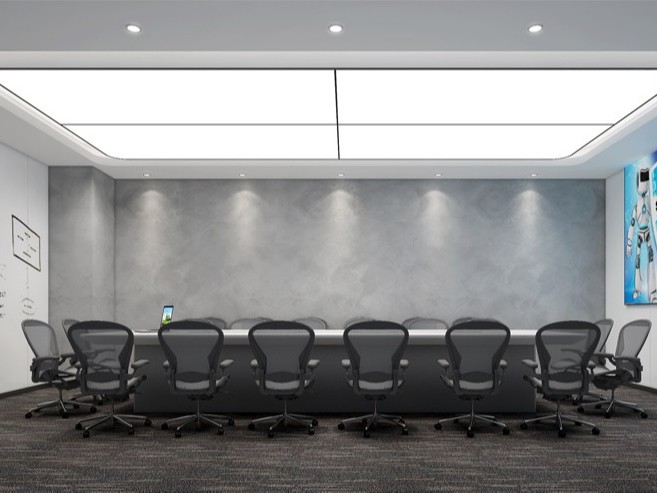會議室以正式化會議所需要的風格去設計,使用灰、黑、白組合,并運用白色燈光來制造出良好的采光性,突出現代、統一、穩健、嚴謹,運用視覺設計手段和先進材料與科學施工技術相結合,打造完善的空間和感觀效果。