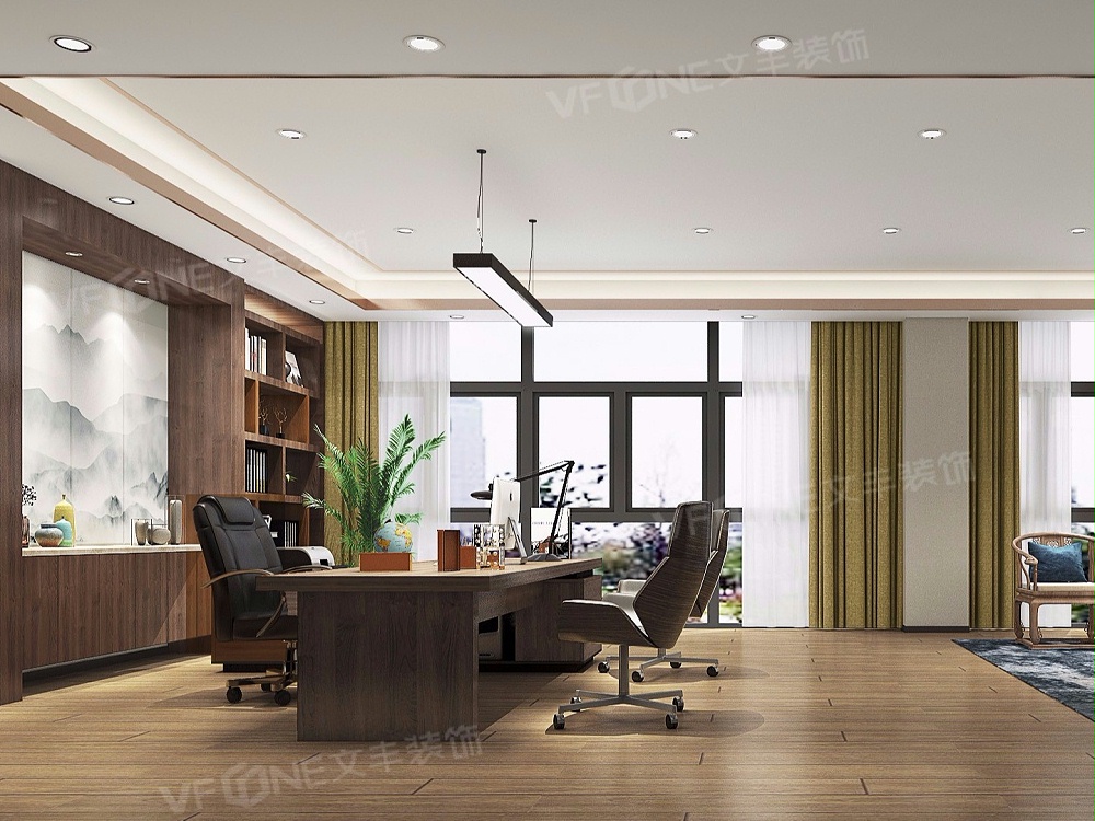 總經(jīng)理室以中式風(fēng)格進行設(shè)計,中式辦公室一向給人成熟穩(wěn)重的感覺,與總經(jīng)理的身份、品位相符合,突出總經(jīng)理室的地位。