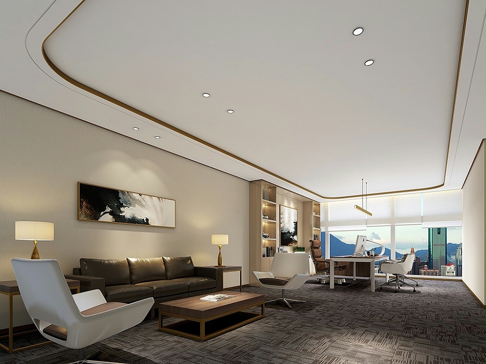 辦公室是一種無(wú)聲的語(yǔ)言,代表著公司的形象、品位與實(shí)力!而董事長(zhǎng)作為企業(yè)中的最高領(lǐng)導(dǎo)人,董事長(zhǎng)辦公室裝修 自然不能夠含糊。大大的落地窗更加開(kāi)闊了辦公室的視野,辦公桌后方的壁畫(huà)以及燈光都采用了金色,黑色質(zhì)感的家具,無(wú)不彰顯著主人的高貴身份。