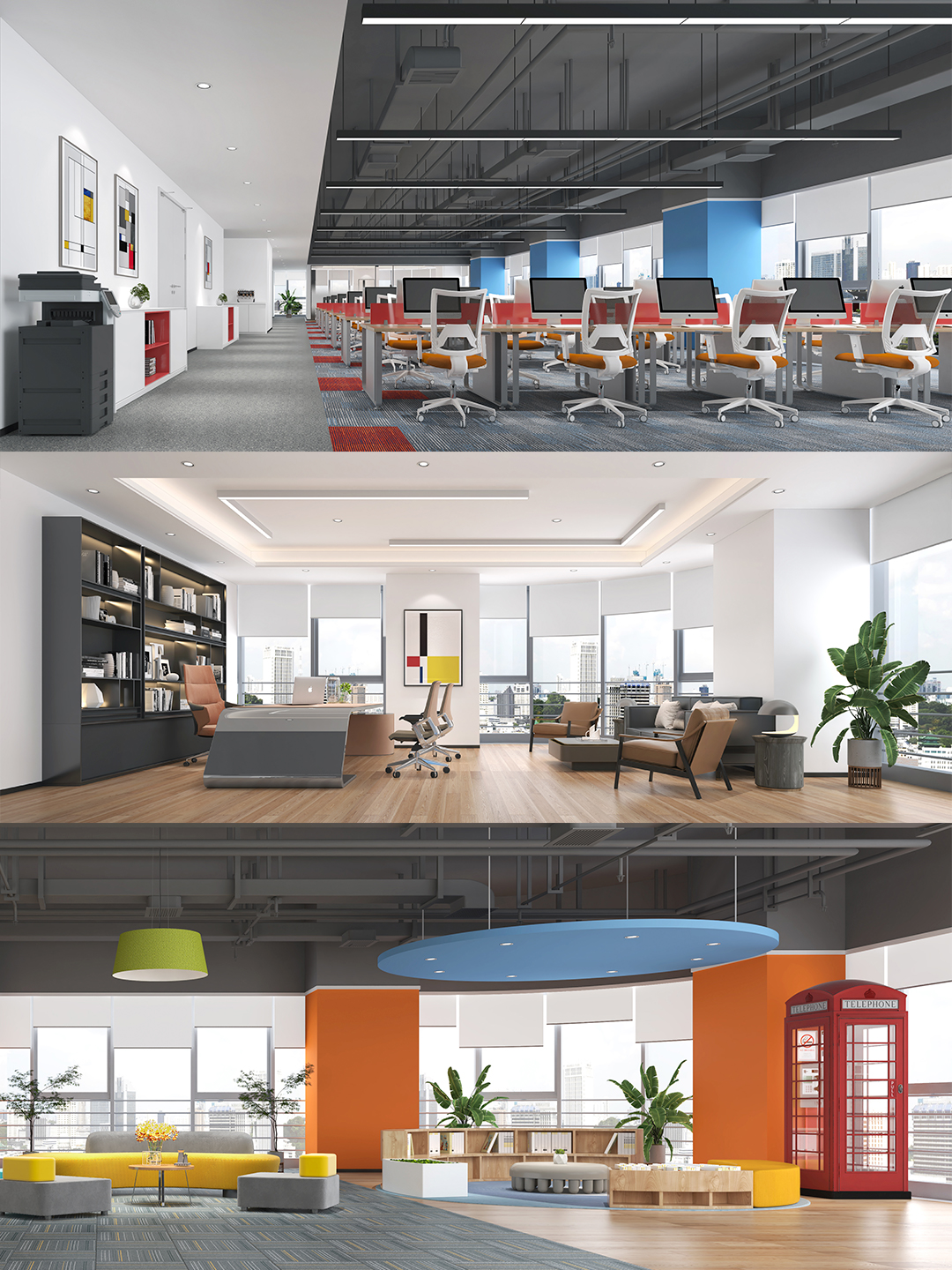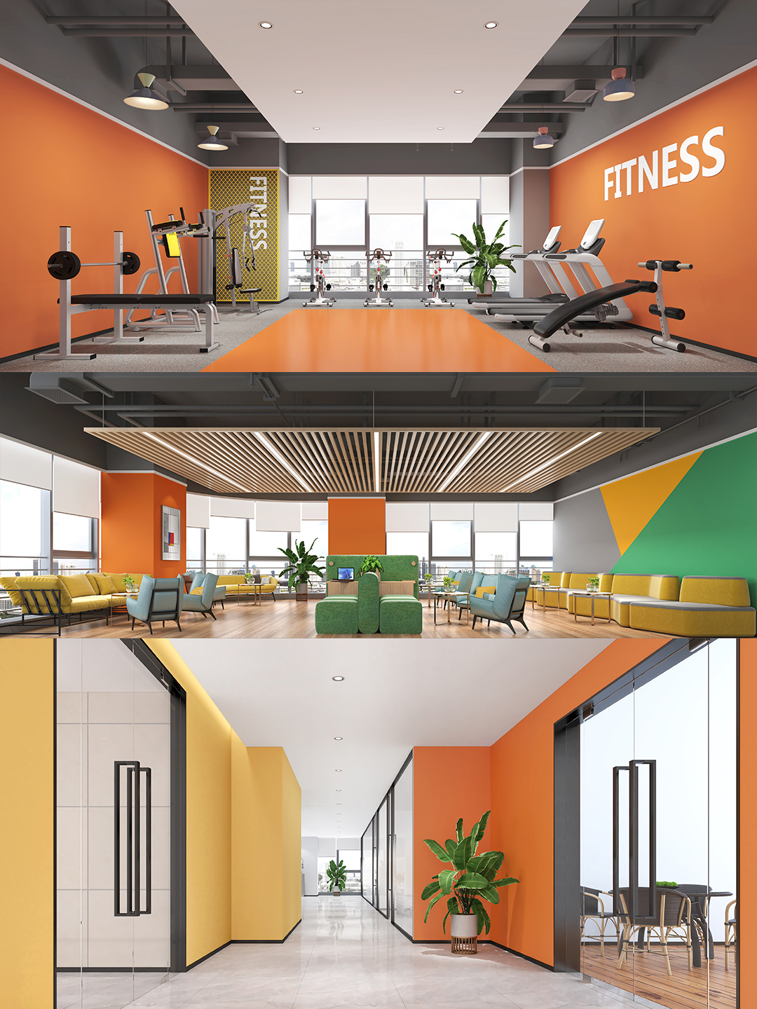 健身區(qū)設計:量身定制員工健身區(qū),色調以橙色為主,讓運動鍛煉更有活力 。